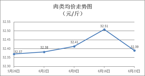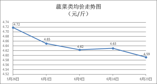 据本市21家农贸市场监测数据显示,上周(6月16日至6月23日)市场上各类“菜篮子”商品供应充足,所监测的7大类“菜篮子”商品价格1涨5跌1平。其中:与上周比(环比),粮油类、禽蛋类商品价格微幅波动,肉类、蔬果类、水产类商品价格总体略降。季节性需求转弱,肉菜价格总体略降,预计后期高温高湿天气影响下,各类鲜活农产品价格表现持续弱势。
