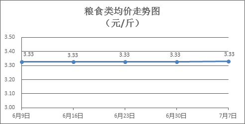 粮食类商品价格保持稳定。所监测的6种粮食类商品价格均持平,零售均价为每斤3.33元。其中:晚籼米、珍珠米、标准粉零售均价分别为每斤3.26元、3.08元、3.17元,环比均持平。
