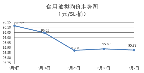 食用油类商品价格稳中微调。所监测的9种食用油(5L装)商品价格波动情况为3涨1跌5平,综合零售均价为每桶95.88元,环比下降0.01%。其中:鲁花花生油、菜籽油零售均价分别为每桶154.50元、73.55元,环比分别上涨0.03%、下降0.16%。