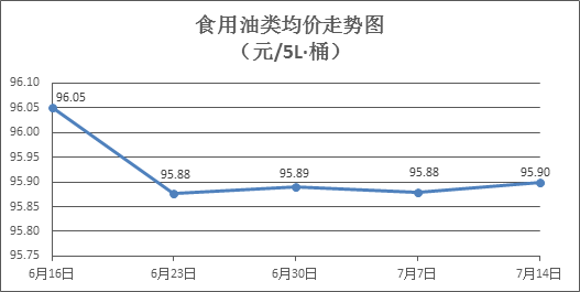食用油类商品价格微幅盘整。所监测的9种食用油(5L装)商品价格波动情况为3涨4跌2平,综合零售均价为每桶95.90元,环比上涨0.02%。其中:胡姬花花生油、玉米油零售均价分别为每桶145.60元、76.95元,环比分别下降0.27%、上涨0.09%。