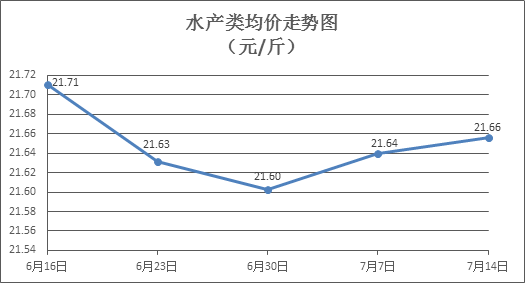 水产类商品价格微幅上涨。所监测的10种水产商品价格波动情况为5涨2跌3平,综合均价为每斤21.66元,环比上涨0.09%。其中:草鱼、鲫鱼、鲈鱼、罗非鱼、基围虾零售均价分别为每斤11.21元、14.39元、21.57元、8.87元、29.94元,环比分别上涨0.36%、上涨0.63%、下降0.14%、上涨0.23%、下降1.16%。