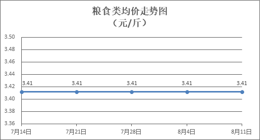粮食类商品价格保持稳定。所监测的5种粮食类商品价格均持平,零售均价为每斤3.41元。其中:晚籼米、油粘米、标准粉零售均价分别为每斤3.30元、3.52元、3.17元,环比均持平。