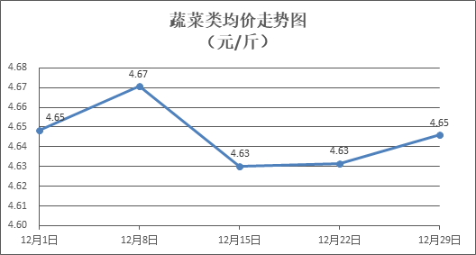 据本市21家农贸市场监测数据显示,上周(12月23日至12月29日)市场上各类“菜篮子”商品供应充足,所监测的7大类“菜篮子”商品价格总体表现为3涨3跌1平。其中:粮油类商品价格基本平稳,鲜肉类、蔬果类商品价格窄幅盘整,禽蛋类商品价格略有回升。节日效应带动下,部分禽蛋类、蔬菜类价格略涨。节后供需降温,预计肉菜类价格微幅盘整。