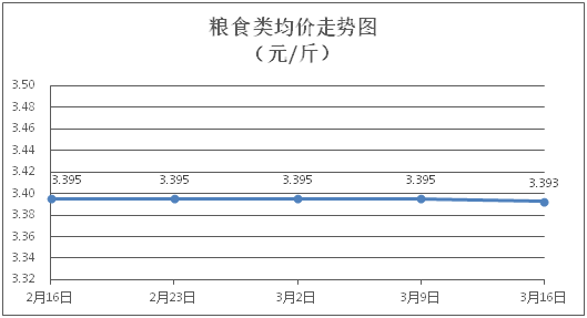粮食类商品价格基本平稳。所监测的4种粮食类商品价格波动情况为1跌3平,综合零售均价为每斤3.393元,环比下降0.07%。其中:丝苗米、面粉零售均价分别为每斤3.53元、3.40元,环比分别下降0.28%、持平。