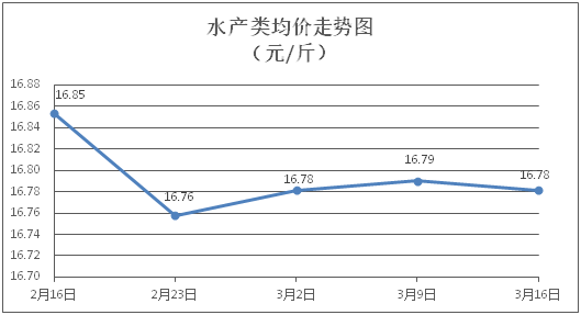 水产类商品价格小幅波动。所监测的9种水产商品价格波动情况为4涨5跌,综合均价为每斤16.78元,环比下降0.05%。其中:草鱼、鲫鱼、鳙鱼、罗非鱼、基围虾零售均价分别为每斤11.11元、14.43元、10.66元、9.10元、30.00元,环比分别上涨1.00%、上涨0.28%、下降0.74%、下降0.44%、下降0.40%。