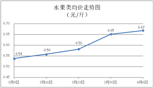 水果类商品价格总体略涨。所监测的6种水果商品价格波动情况为2涨2跌2平,综合零售均价为每斤6.67元,环比上涨0.25%。其中橙子、香蕉、葡萄零售均价分别为每斤6.12元、3.26元、14.08元,环比分别下降0.81%、上涨0.31%、上涨1.08%。