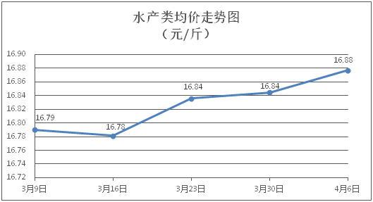 水产类商品价格窄幅盘整。所监测的9种水产商品价格波动情况为3涨4跌2平,综合均价为每斤16.88元,环比上涨0.19%。其中:黄花鱼、草鱼、鲫鱼、罗非鱼、基围虾零售均价分别为每斤22.70元、11.00元、14.28元、9.11元、30.13元,环比分别上涨0.44%、下降0.99%、下降0.14%、下降0.33%、上涨0.03%。