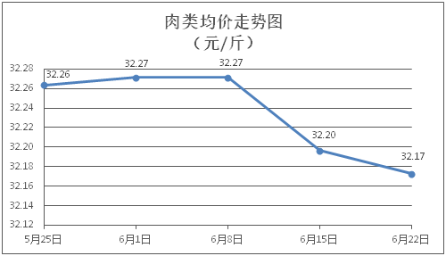 肉类商品价格微幅盘降。所监测的8种肉类商品价格波动情况为3涨4跌1平,综合零售均价为每斤32.17元,环比下降0.07%。其中:排骨、精瘦肉、肋条肉、牛肉、带骨羊肉零售均价分别为每斤30.16元、19.00元、15.83元、46.47元、42.36元,环比分别下降0.26%、下降0.16%、下降0.44%、上涨0.09%、上涨0.09%。