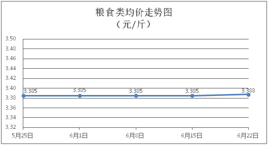 粮食类商品价格基本平稳。所监测的4种粮食类商品价格波动情况为1涨3平,综合零售均价为每斤3.388元,环比上涨0.07%。其中:丝苗米、面粉零售均价分别为每斤3.51元、3.40元,环比分别上涨0.29%、持平。