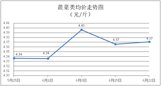 蔬菜类商品价格升降互现。所监测的32 种蔬菜商品价格波动情况为11涨16跌5平,综合零售均价为每斤4.37元,环比上涨0.11%。其中:涨幅居前的品种包括生菜、菠菜、花菜,零售均价分别为每斤3.95元、6.18元、4.80元,环比分别上涨6.18%、3.87%、3.45%;跌幅靠前的品种包括水空心菜、西芹、莴笋,零售均价分别为每斤3.65元、4.66元、3.57元,环比分别下降3.69%、2.51%、1.92%。