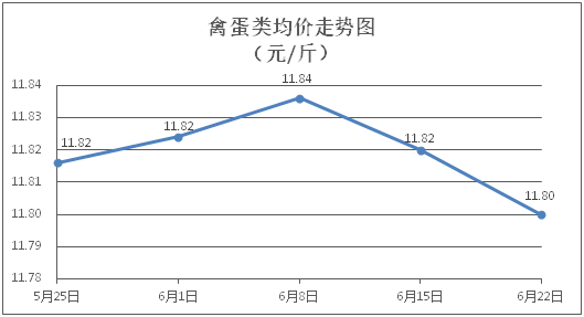 禽蛋类商品价格微幅下降。所监测的5种禽蛋类商品价格波动情况为3跌2平,综合零售均价为每斤11.80元,环比下降0.17%。其中:白条鸡、白条鸭零售均价分别为每斤20.61元、15.42元,环比分别下降0.29%、下降0.19%;鸡蛋、鸭蛋零售均价分别为每斤6.62元、7.17元,环比分别下降0.15%、持平。