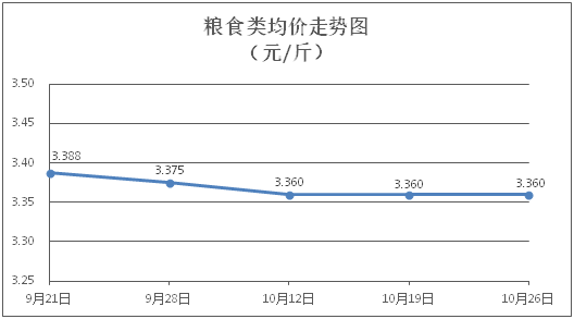 粮食类商品价格保持稳定。所监测的4种粮食类商品价格均持平,综合零售均价为每斤3.360元。其中:丝苗米、面粉零售均价分别为每斤3.51元、3.32元,环比均持平。