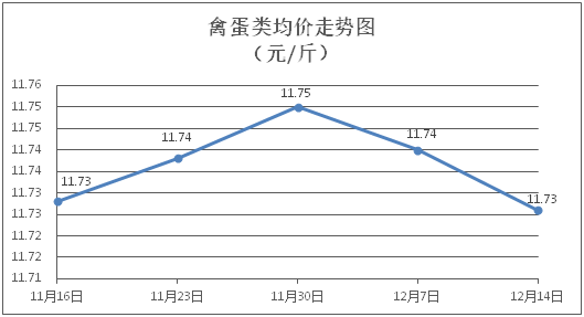 禽蛋类商品价格微幅下降。所监测的禽蛋类商品价格波动情况为3跌2平,综合零售均价为每斤11.73元,环比下降0.12%。其中:白条鸡、白条鸭零售均价分别为每斤20.92元、15.26元,环比分别下降0.10%、下降0.20%;鸡蛋、咸鸭蛋零售均价分别为每斤6.33元、8.93元,环比分别下降0.31%、持平。