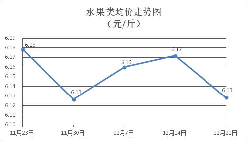 水果类商品价格窄幅盘整。所监测的水果商品价格波动情况为2涨2跌2平,综合零售均价为每斤6.13元,环比下降0.70%。其中橙子、苹果、葡萄零售均价分别为每斤6.10元、7.99元、11.52元,环比分别下降1.61%、上涨0.38%、下降1.71%。