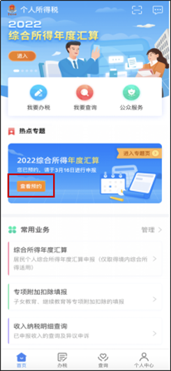 需要说明的是,预约功能开放时间为2023年2月16日至3月20日每天的早6点至晚22点,纳税人可在上述时间内登录手机个人所得税APP并预约3月1日至3月20日的年度汇算申报。