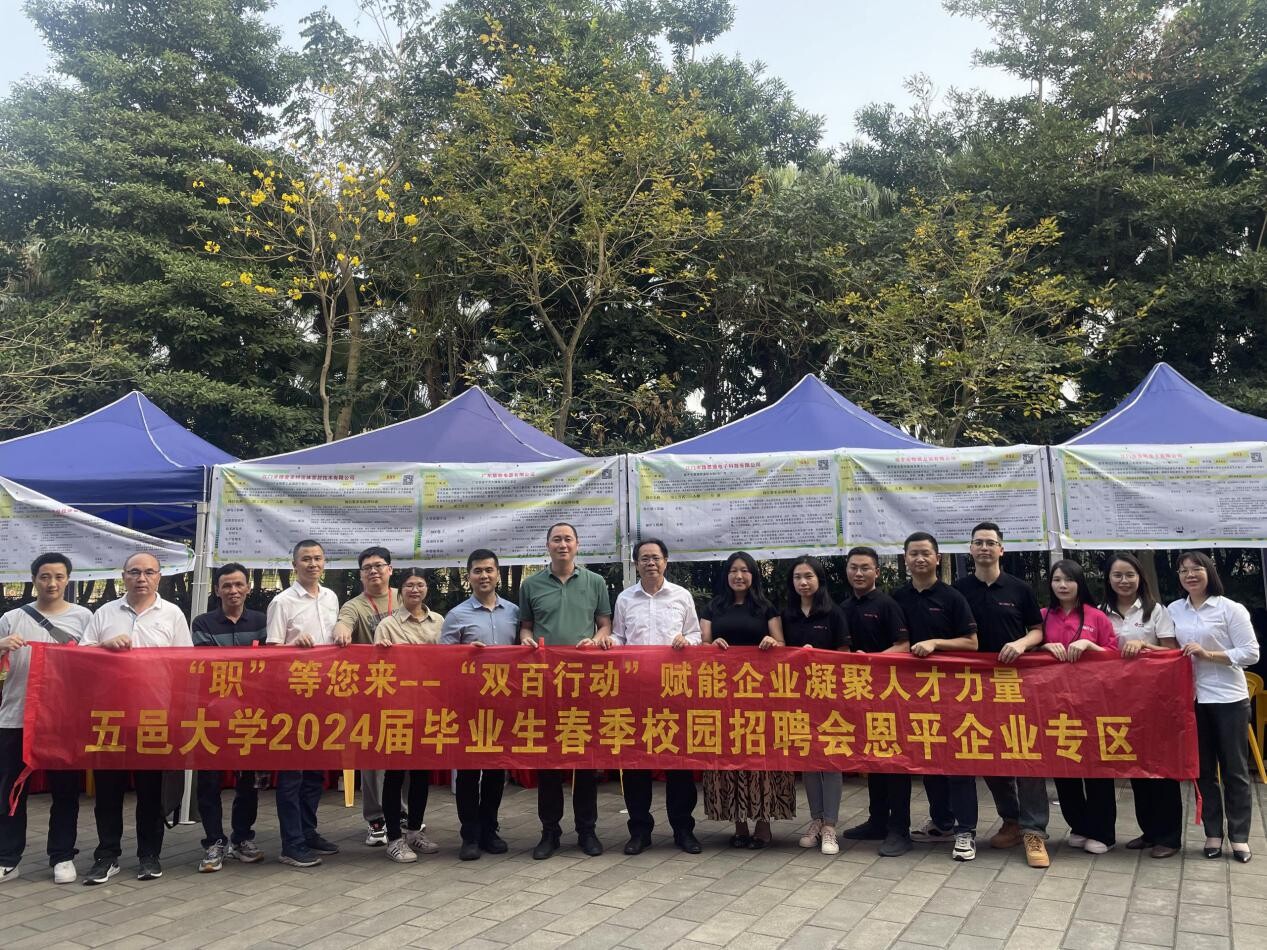在五邑大学的招聘会现场,莘莘学子,人头涌涌。参与本次招聘活动的恩平企业一共有19家,包含新材料、电声器材、智能装备、电器制造、商业广场等行业,招聘岗位包含各种技术、技术岗位等。其中,技术类岗位较受欢迎,不少企业招聘摊位前面排起队伍,等候面试。有企业现场设置了试卷,让招聘者参加测试,“我们首先收集大家的简历,让同学们做题,再由企业负责人根据答题情况进行筛选,决定面试名单。”江门市捷思通电子科技有限公司现场负责人胡女士表示。