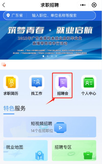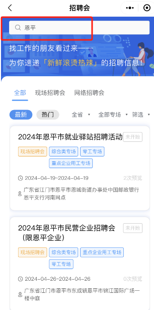 (三)点击“招聘会”,输入关键字“恩平”搜索恩平场次招聘活动。