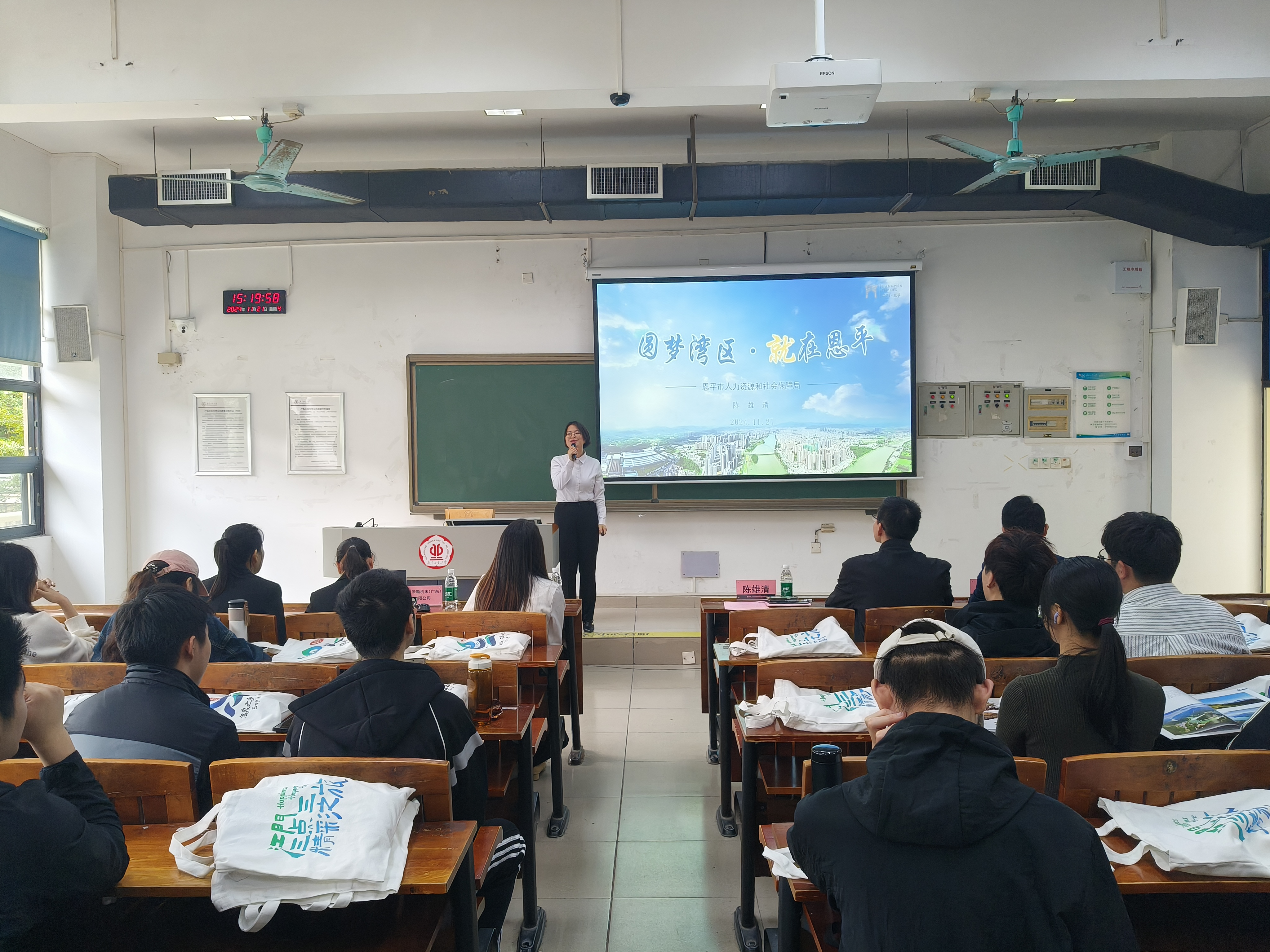 活动共分为三个环节,首先由快猫 人力资源和社会保障局副局长陈雄清通过恩平人才环境宣传片、快猫 情介绍、就业创业人才政策、现场交流答疑等形式,向高校学子推介恩平淳厚的历史人文、良好的产业生态、开放的人才政策和广阔的发展空间,诚挚欢迎优秀高校学子来恩工作。现场还针对求职创业补贴、灵活就业社保补贴、应届高校毕业生社会保险个人缴费补贴、一次性创业资助及职业技能培训补贴等相关政策补贴展开详细介绍,现场学生兴趣高涨。同时,还为学生们精心准备了特色礼品,并提供了人才政策咨询联系方式。