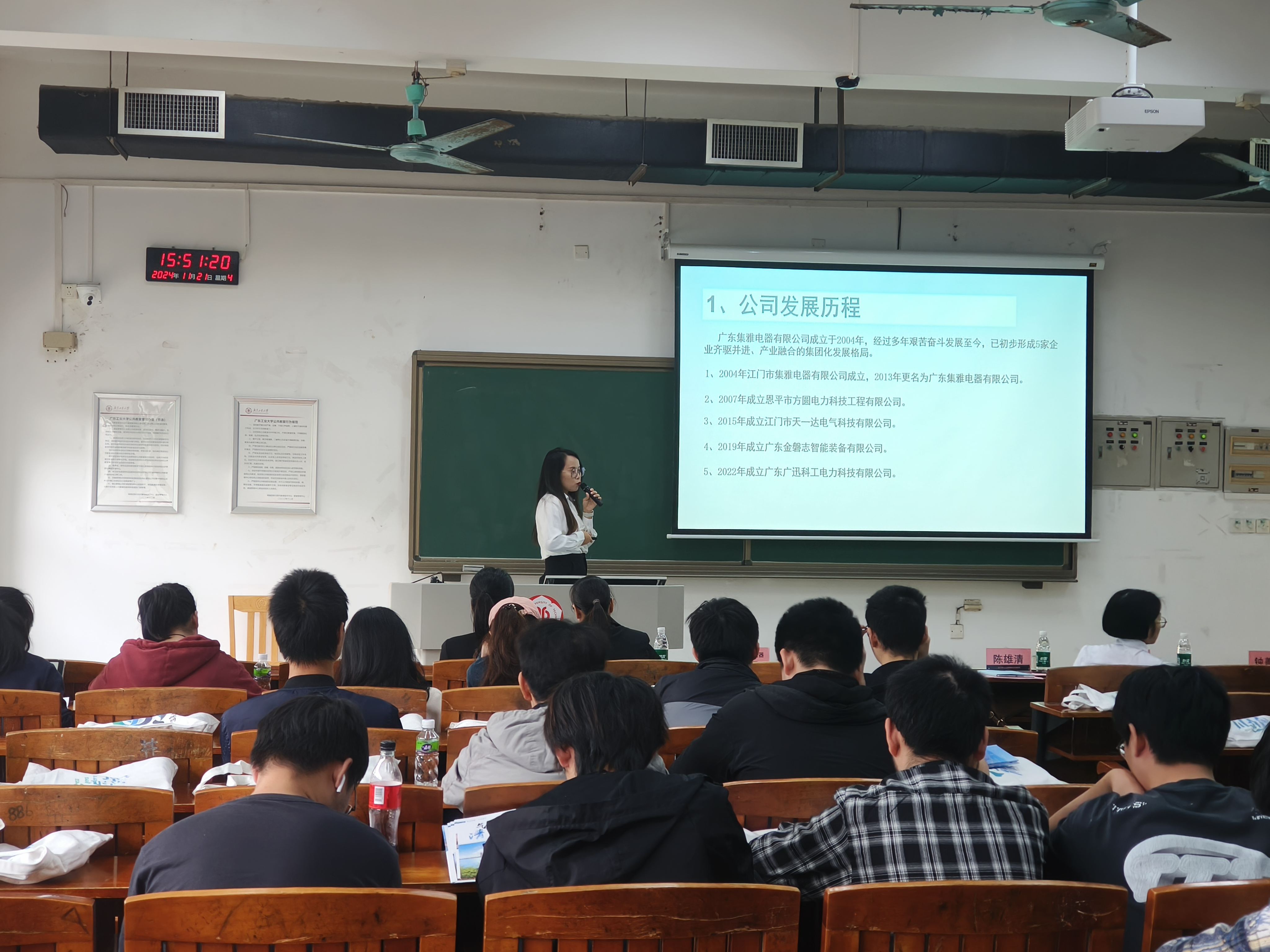 随后,广东集雅电器有限公司经理何素婷、普锐米勒机床(广东)有限公司经理李超华分别上台,现场带岗宣讲,详细介绍了各自企业的岗位需求和快猫,为在场学生提供了直面就业的机会,并从多个角度分析了恩平企业优势,解读了招聘信息,教授了求职技巧,帮助在场学生更加明确自己的职业方向,提高求职成功率。