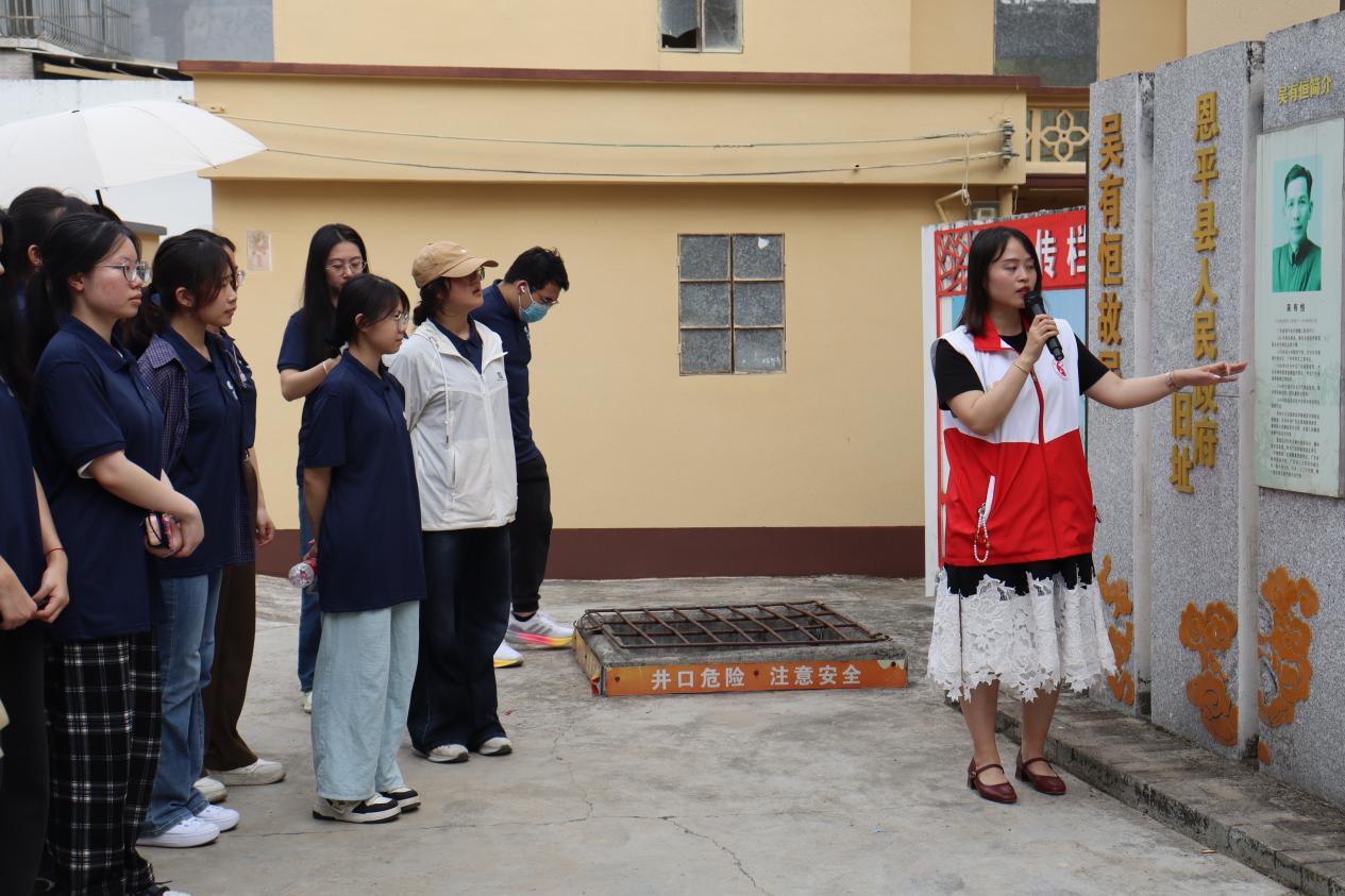 在上凯村,港澳学子们走进了吴有恒故居——因树书屋,观看了吴有恒小说改编的电影《山乡风云录》部分片段,在吴有恒的雕像前了解其充满传奇色彩的一生,通过丰富的图文了解吴有恒及其家人为革命事业作出的贡献。“中华人民共和国成立前,吴有恒曾经在香港工作过,与同学们有着微妙的缘分。”现场工作人员介绍道。
