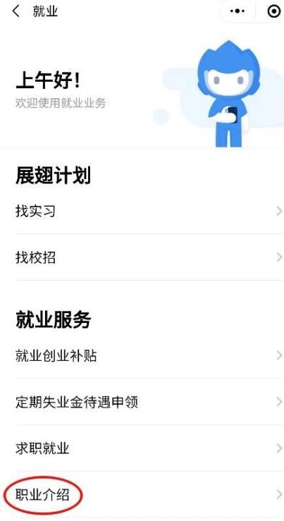 二、点击“就业”→点击“职业介绍”→点击“开始办理”