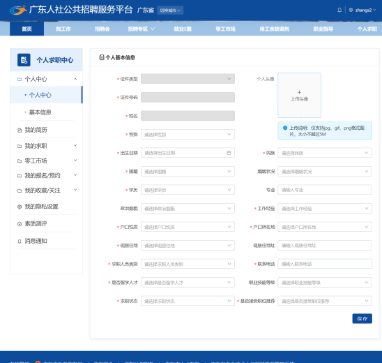 五、点击“个人中心”,可进入查看个人信息、申请职位信息、点击“编辑”可进入个人信息编辑界面;点击“我的简历”可设置个人简历