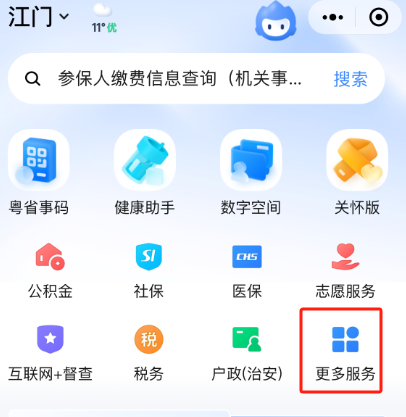 (一)打开“粤省事”微信小程序,点击“更多服务”按钮;