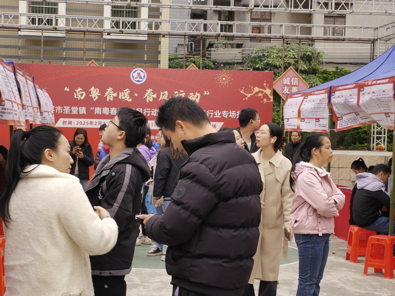 人社局、圣堂镇政府于圣堂镇文体广场举办“南粤春暖·春风行动”——演艺装备行业专场招聘会,努力推动实现招工企业和求职者的双向奔赴。