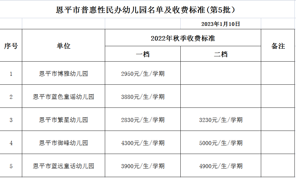 快猫 普惠性民办幼儿园名单及收费标准(第5批)