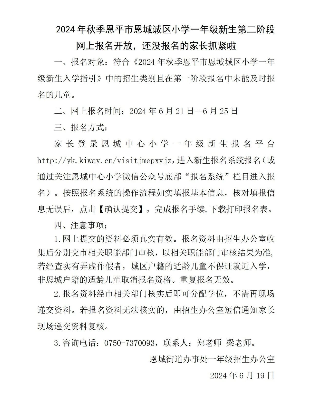 2024年秋季快猫 恩城城区小学一年级新生第二阶段网上报名开放,还没报名的家长抓紧啦