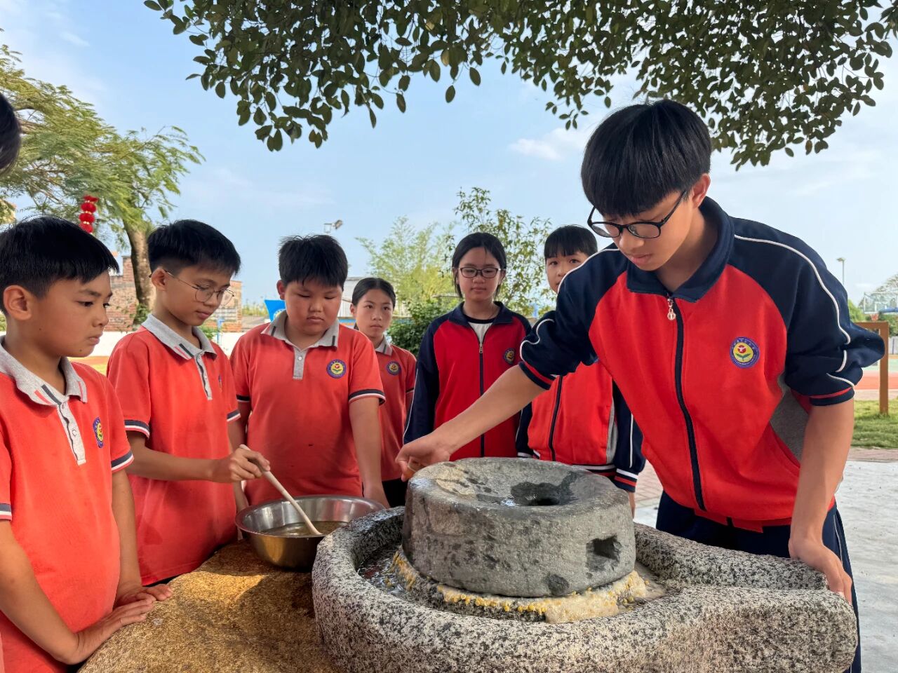 石磨缓缓转动,醇厚的豆浆流淌而出,快猫 大田镇中心小学的孩子们在立志园里,通过亲手研磨豆浆,聆听老师讲述革命年代里一袋糍粑、一块豆腐如何成为军民鱼水情的见证……