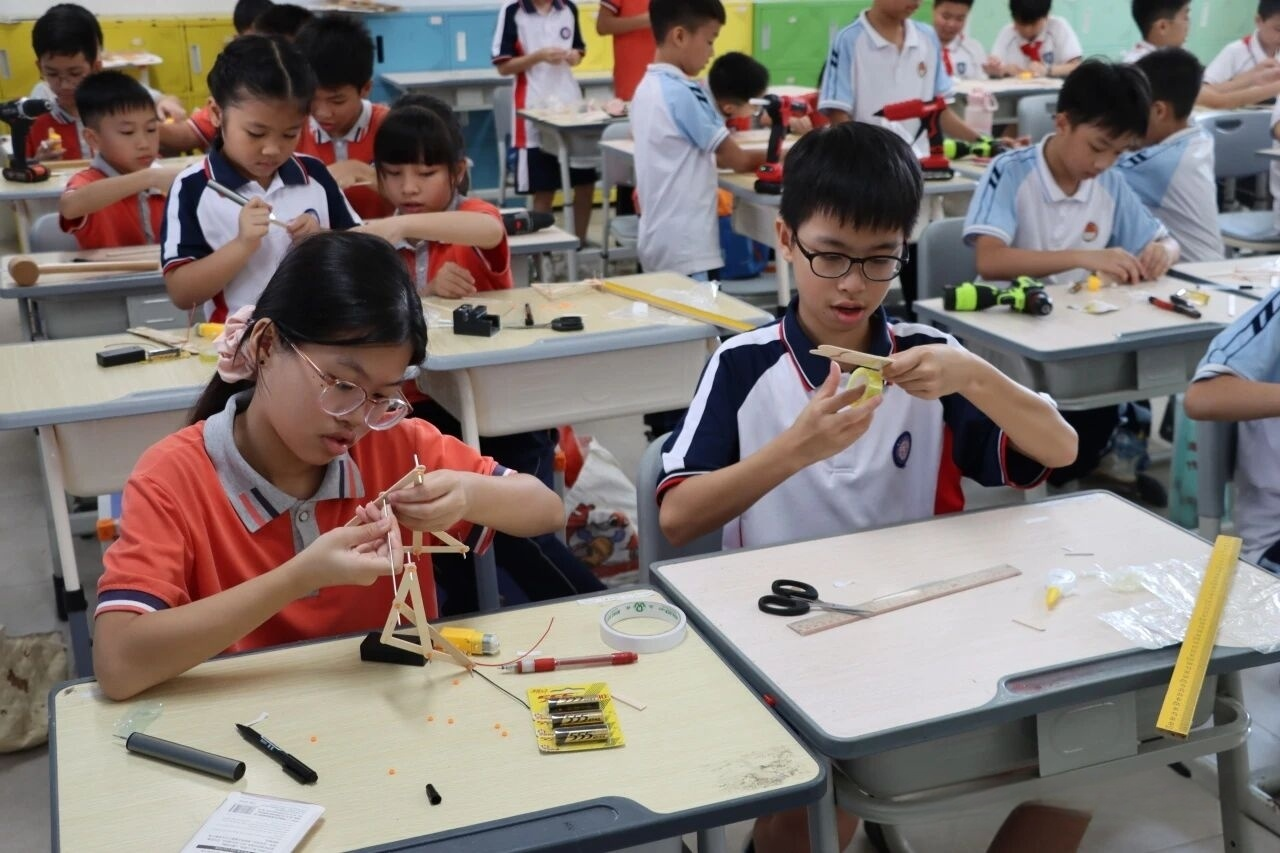 蓝色法治与科技课堂致力于培养法治观念与科学素养。法治副校长开讲,宪法日打卡,让规则意识住进少年心里;航空思政、院士面对面,把创新种子“播”进课堂。