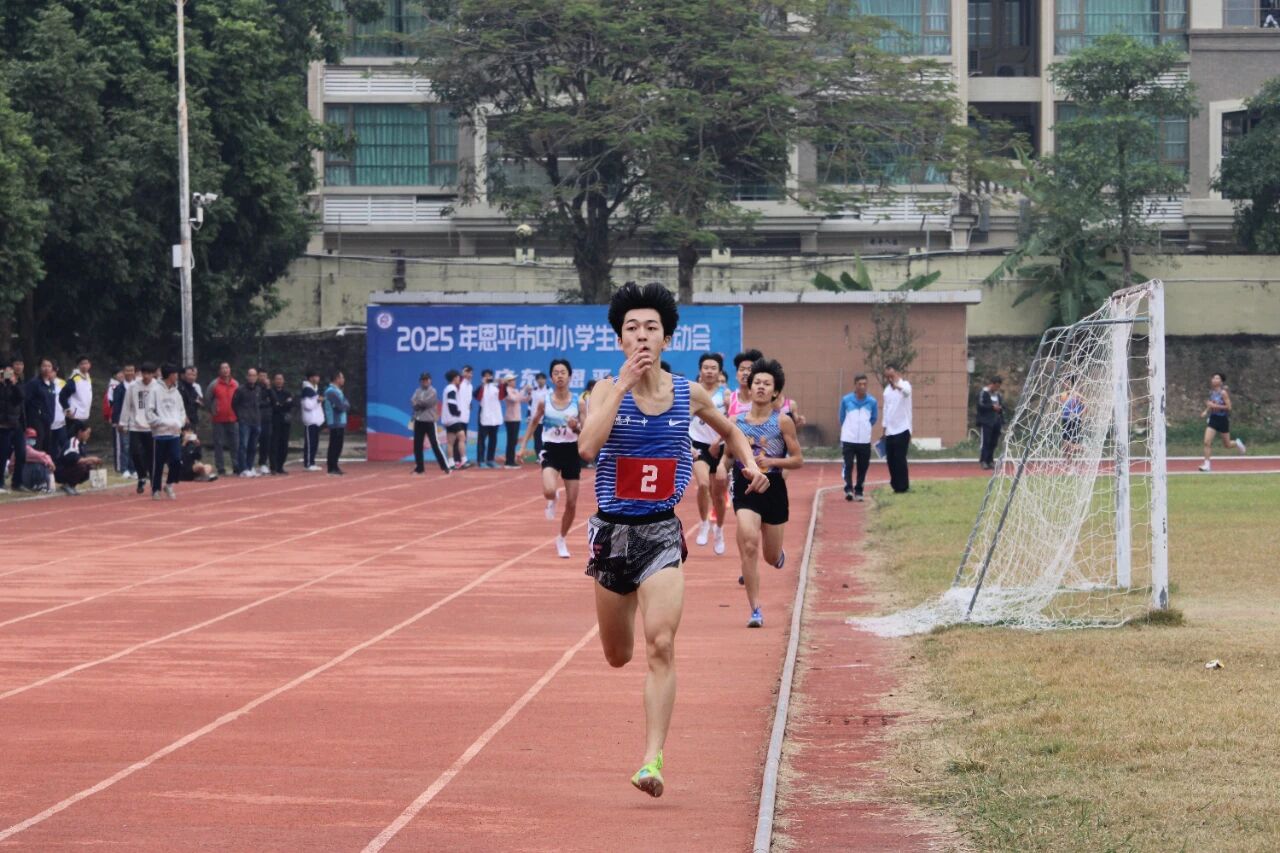 开幕式后,比赛正式拉开帷幕,男子初中组、女子初中组、男子高中组和女子高中组的800米决赛率先鸣枪开跑。在备受关注的男子高中组800米赛事中,恩平一中学生袁昊文以绝对优势摘得桂冠。冲刺阶段,遥遥领先的他还向观众席送上“胜利之吻”,最终以2分04秒18的成绩冲过终点线。本次赛事,袁昊文报名了800米和400米两个个人项目,他的后续表现值得期待。“这次比赛我还没尽全力,不过也积累了不少实战经验。”袁昊文赛后坦言,“我的偶像是刘德助,希望能朝着他的方向努力,未来走体育专业道路,通过体育特长考上理想的大学。”他分享道,自己的训练主要利用课余时间,通过看书、看视频钻研技术动作,在一次次打磨中逐步提升成绩。今年,袁昊文曾在2025年广东省中学生田径锦标赛中崭露头角,以51秒96的成绩斩获男子甲组400米亚军,目前已成功考取男子400米和800米两个项目的国家二级运动员证书。接下来,他还将代表恩平出征江门市的相关赛事。