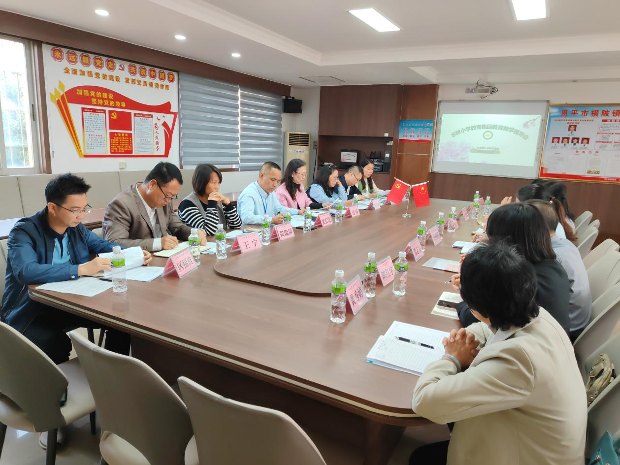 集团各成员校校长一行在参观横陂镇中心小学校园文化建设后,集中召开集团工作视导会议。