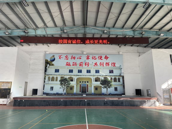 LED屏宣传造浓氛围,让诚信理念可视化。学校充分利用校园核心区域的LED显示屏,打造流动的“诚信教育阵地”。屏幕上持续滚动“诚信伴我行,美德驻我心”“校园有诚信,成长更光明”等简洁有力的标语。师生每日经过体育馆时,都能受到潜移默化的熏陶,逐步形成“人人知诚信、人人讲诚信”的浓厚校园氛围。