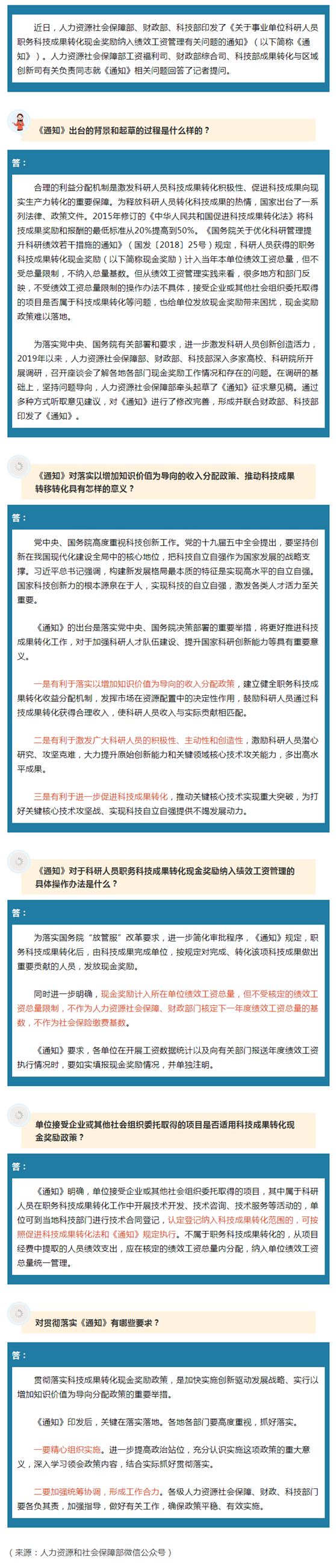 权威解读《关于事业单位科研人员职务科技成果转化现金奖励纳入绩效工资管理有关问题的通知》