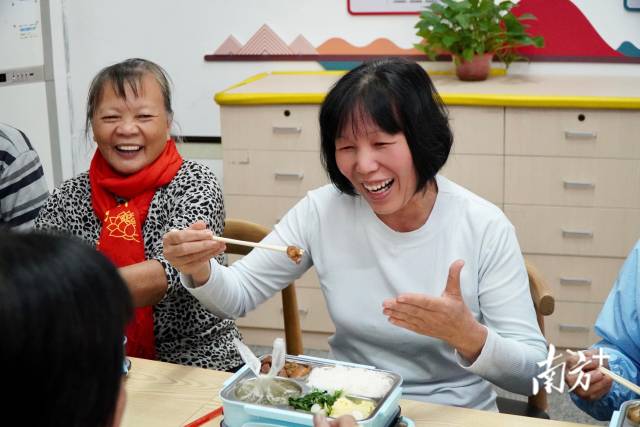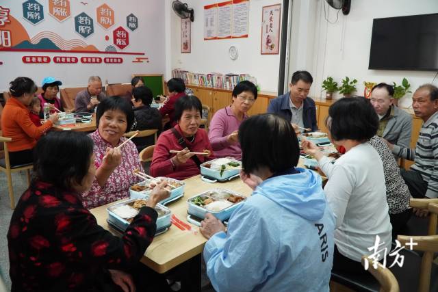 长者食堂里,大家脸上洋溢着笑容,气氛和乐融融。