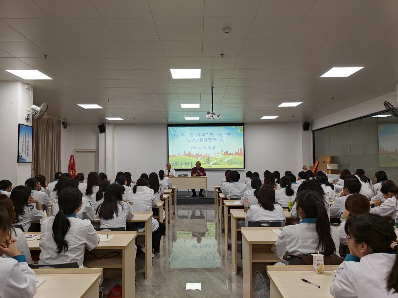 长安药业有限公司企业开展2025年“全民禁毒”暨“药品安全”宣传活动,该企业相关管理人员和各连锁门店负责人共100余人参加培训会。