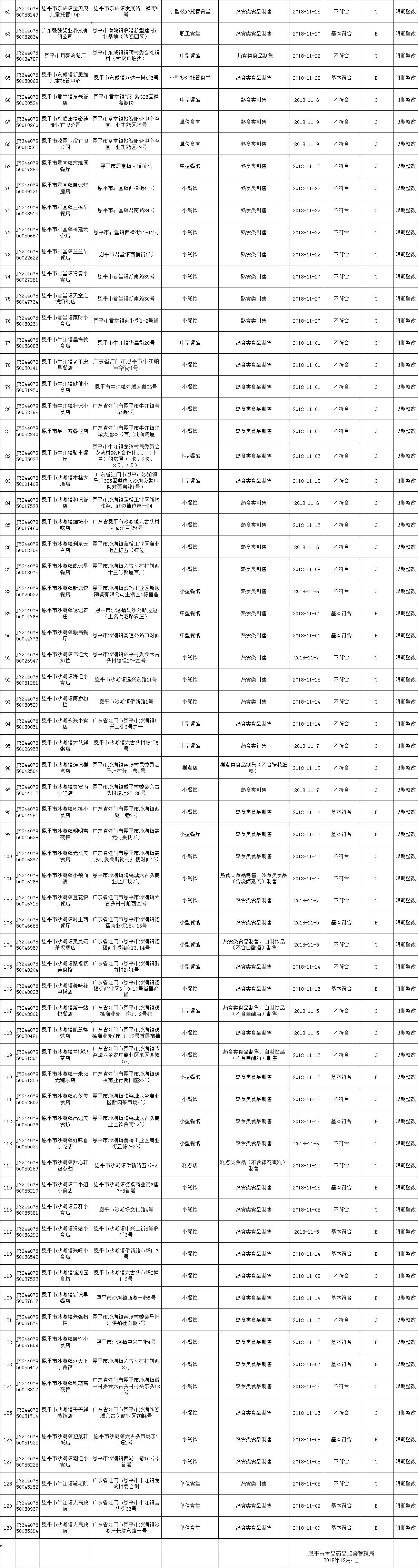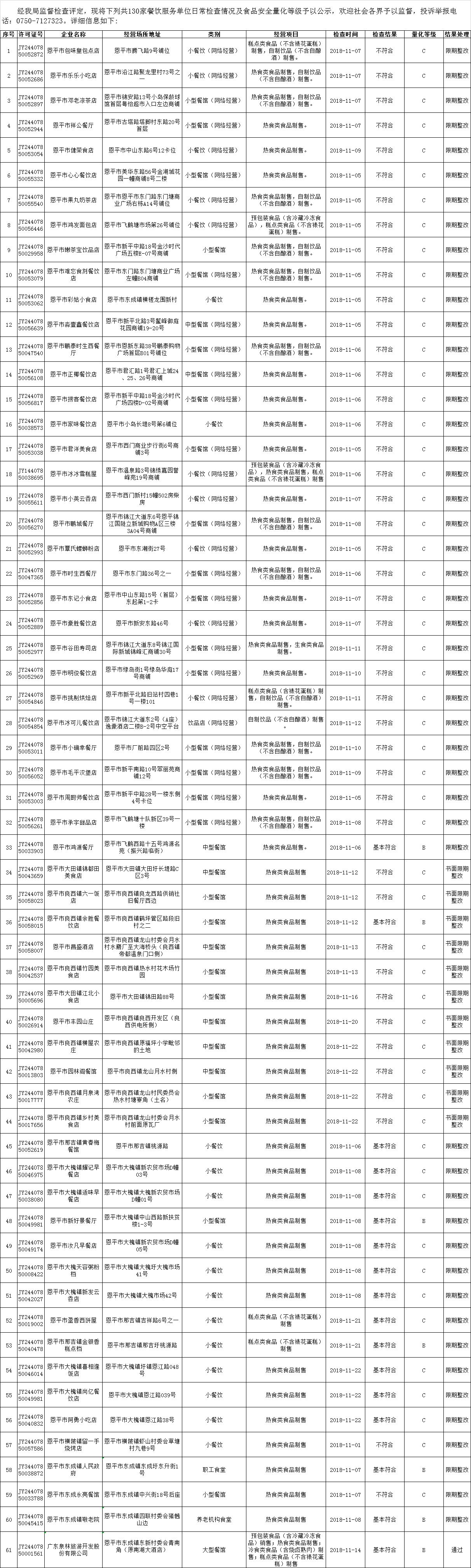 快猫 食品经营(餐饮环节)量化等级日常检查情况公示20181204
