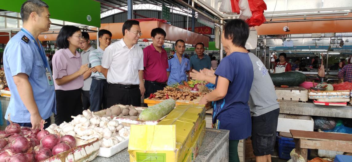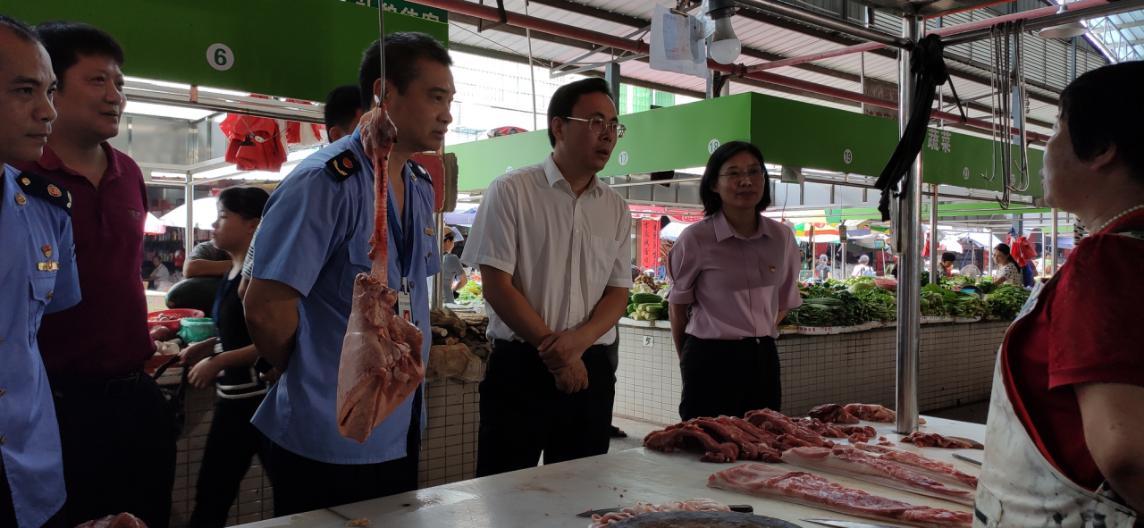 9月5日上午,市委副书记、市长刘兵在市府办副主任郑伟峰、市市场监管局局长吴炳琼、市农业农村局局长余汉忠等陪同下对我市东安市场开展检查。检查组在东安市场检查了入场经营的蔬菜、猪肉产品等食用农产品,并重点查看在售猪肉产品是否具备合格有效的动物检疫合格证明、肉品品质检验合格证明和非洲猪瘟病毒检测结果报告。同时,检查组一行认真听取了市场经营户及群众对于我市农贸市场经营环境、周边道路交通等的意见和建议。
