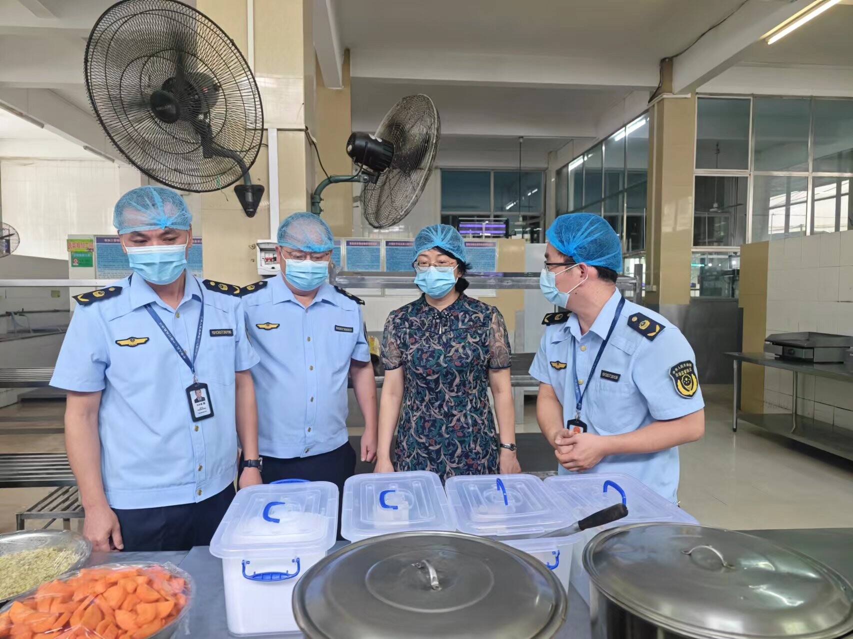 三是强化监督检查,全程驻点监管。该局结合校园食品安全排查整治专项行动,对供餐学校食堂进行全方位全覆盖监督检查,深入排查高考供餐学校食堂及周边食品经营单位食品安全风险隐患。在高考前对菜谱进行严格审查,禁止供餐学校食堂提供生食类、冷荤凉菜、四季豆、发芽土豆等高风险食品。高考期间,该局严格落实重大活动食品安全保障要求,全程驻点供餐学校食堂,对大米、食用油等大宗食品原料开展监督抽检和现场蔬菜农药残留快筛快检,加强对原材料采购加工、清洗消毒、食物留样等重点环节进行全链条监管。该局主要负责同志、分管同志率领机动巡查组,不定期对各供餐学校食堂进行巡查,督促驻点人员和食堂严格做好食品安全保障工作。