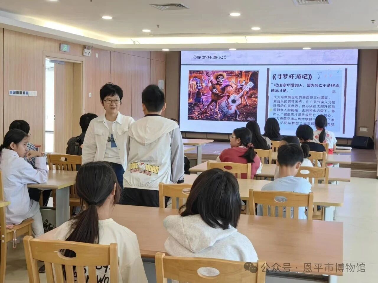 动画电影《寻梦环游记》的联动环节,为活动注入温暖力量。在观看影片片段后,讲解员与青少年共同探讨“死亡与记忆”的主题,提出“爱,是这个宇宙最终极的能量”。当电影中“爱穿越生死、记忆抵抗时间”的理念,与恩平古墓葬“慎终追远”的传统相遇,青少年深刻领悟到:对祖先的缅怀、对家族的眷恋,本质上是“爱”的延续;保护古墓葬,就是守护这份跨越时空的爱与记忆,让“死亡不是终点,遗忘才是”的认知转化为传承文化的自觉。