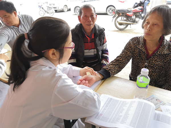 医务人员为居民做中医辨识