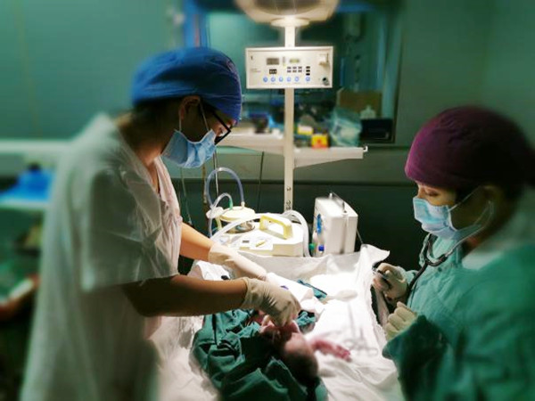 当在家午休的医生护士被迅速召唤回来时,产房里已经做好了术前准备的黄女士情况也不容乐观!脸色苍白,四肢湿冷,血压52/27mmHg,血液如泊泊细流般涌出……(你可以想象一下,一个被拧开了的水龙头,却关不上了的样子!)而腹中的胎儿也出现了胎儿窘迫,胎心音一度跌至70次/分。此时此刻,这对母子,即将坠入生命的深渊!只要再向前一步,就是万劫不复!