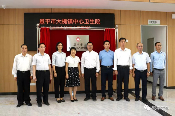 领导嘉宾为大槐镇中心卫生院牌匾揭幕