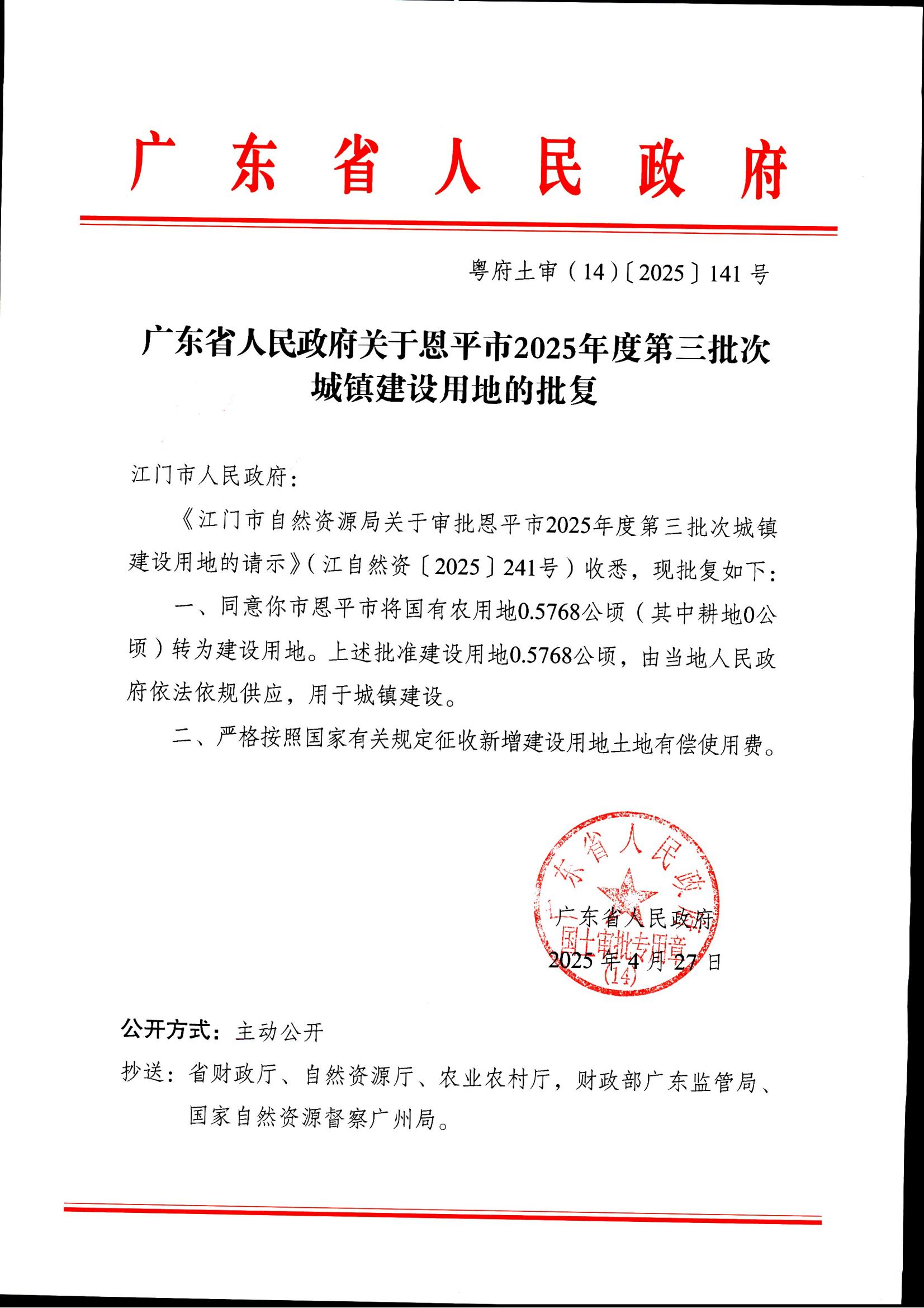 粤府土审(14)〔2025〕141号-广东省人民政府关于快猫 2025年度第三批次城镇建设用地的批复