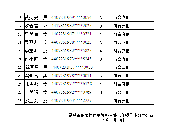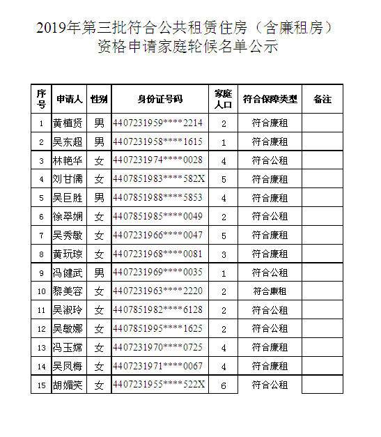 2019年第三批符合公共租赁住房(含廉租房)资格申请家庭轮候名单公示