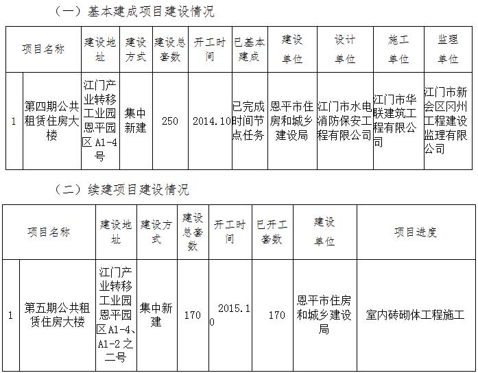 2016年住房保障工作目标任务为基本建成公共租赁住房共250套,基本建成项目为第四期公共租赁住房大楼。截止2016年6月底,该工程室内抹灰工程完成90%;外墙饰面砖铺贴完成65%,已完成时间节点任务。