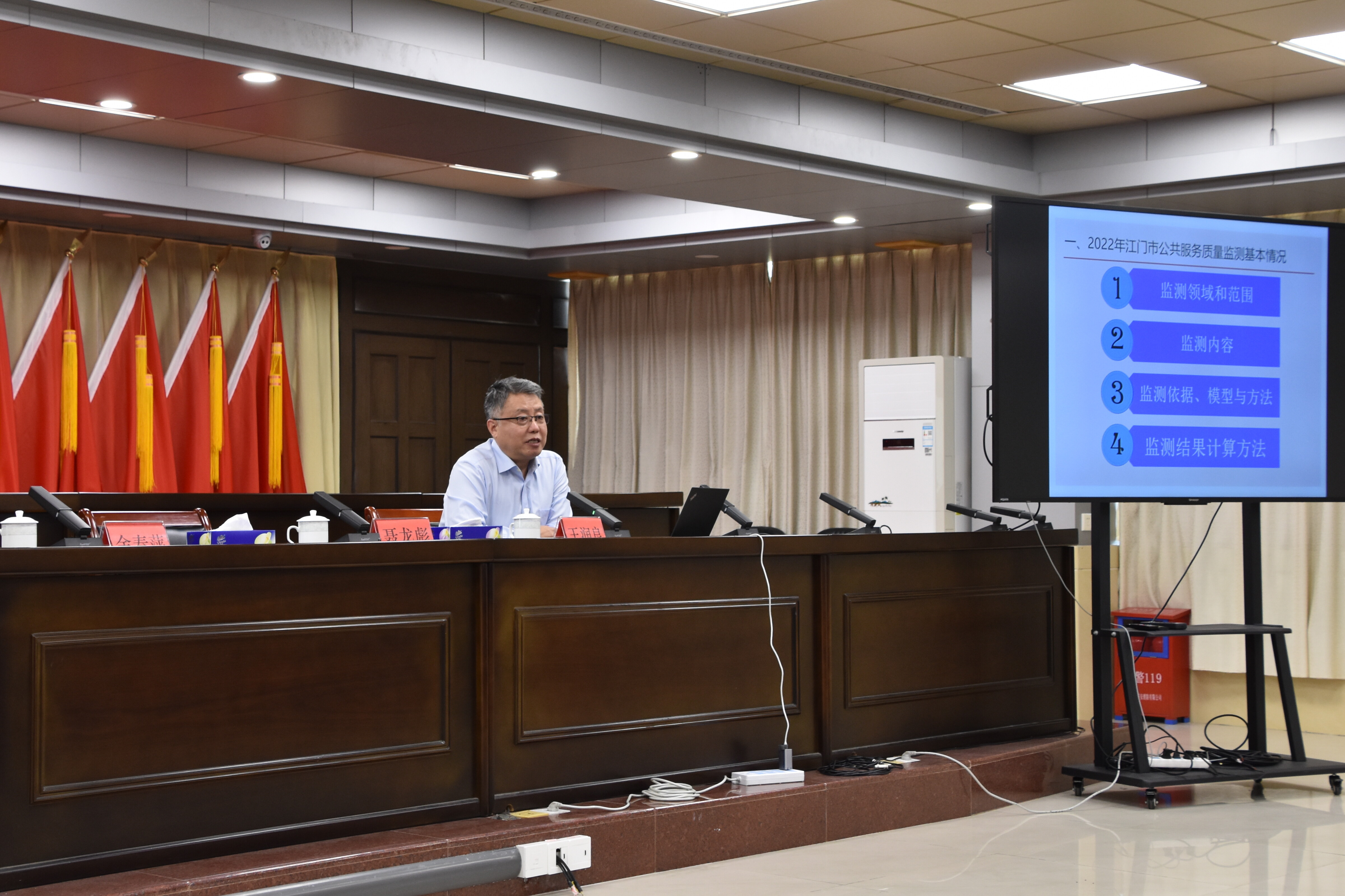为进一步落实公共服务质量工作整改,全面提升公共服务质量的工作水平,结合江门市关于公共服务质量监测整改提升的工作部署,4月26日上午,市质强办组织召开公共服务质量提升专题会议,会议由市质强办主任、市场监管局局长余春萍主持会议,市府办副主任聂龙彪及公共服务质量工作19个主要责任单位、11个镇(街)分管领导出席了此次会议。并邀请了五邑大学王润良教授为我市公共服务质量提升做了研究分析并提出工作建议。