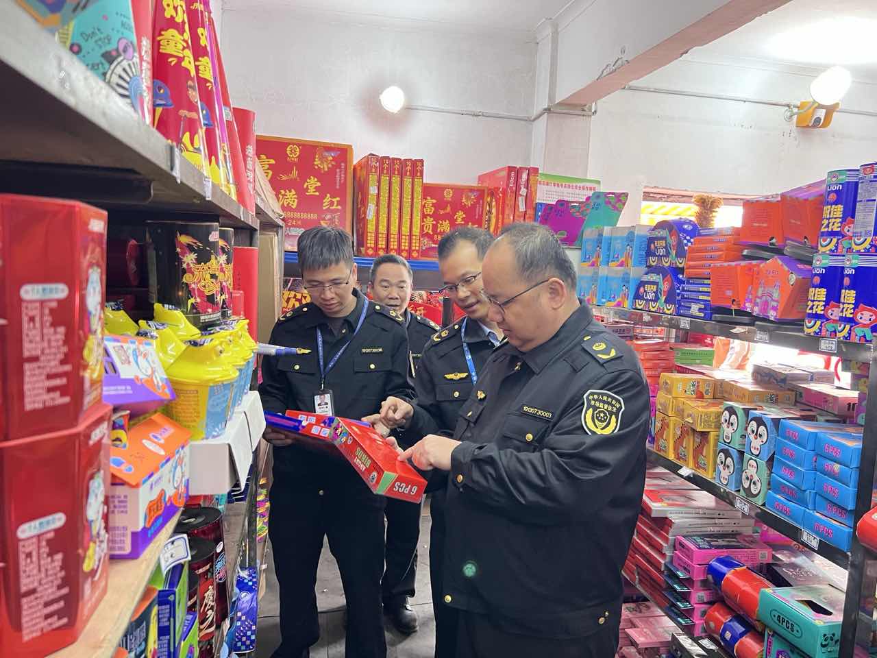 秉承进一门查多项事的原则,市市场监管局协同应急管理和公安等部门开展烟花爆竹质量安全联合执法检查,对烟花爆竹销售单位进行全面“体检”。经检查,发现存在销售过期“发财炮”“焰遇星空”等烟花爆竹,执法人员现场责令商家下架相关产品,并要求商家加强商品的筛查,严格落实主体职责。